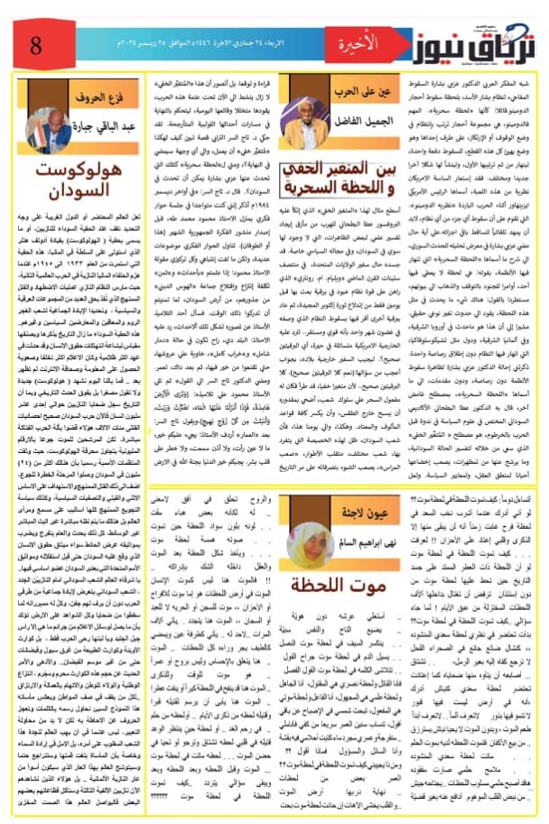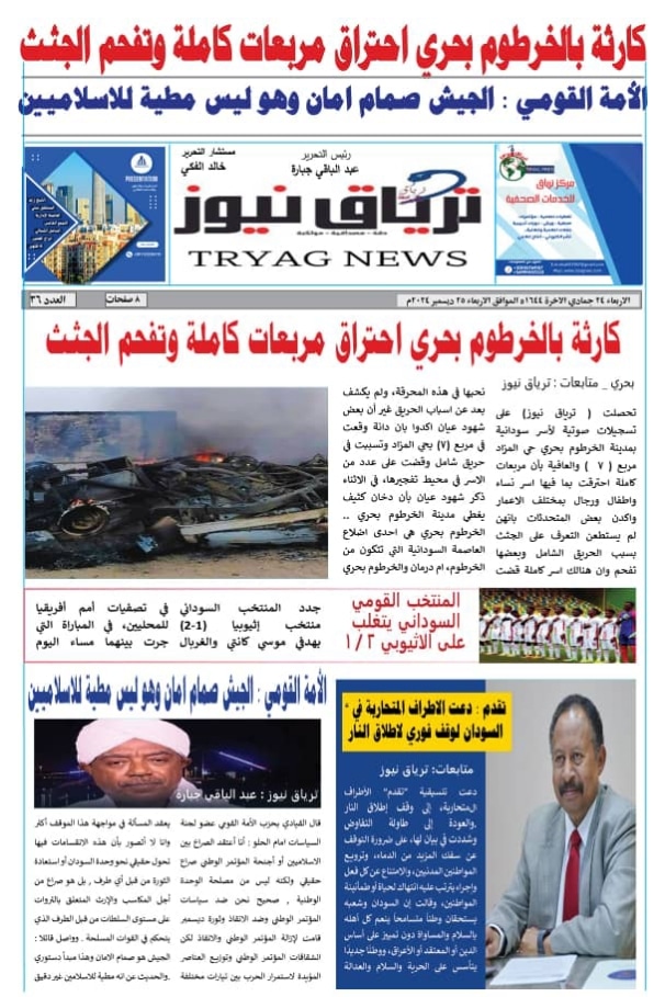 أبرز المواضيع العدد (٣٦) من صحيفة ترياق نيوز بي دي اف الاربعاء ٢٥ ديسمبر ٢٠٢٤م ترياق نيوزديسمبر 25, 2024 Oplus_131072 Oplus_131072 مقالات ذات صلة السيسي يطمئن السودانيين في مصر: لا عودة قسرية ويعد بحل مشكلات المعتقلين فبراير 27, 2026 حرب مفتوحة على خط ديوراند: ضربات جوية متبادلة بين باكستان وأفغانستان تُشعل الحدود فبراير 27, 2026 Oplus_131072 Oplus_131072 Oplus_131072 Oplus_131072 Oplus_131072 Oplus_131072 Oplus_131072 اضغط هنا للانضمام الى مجموعاتنا في واتساب الوسومالعدد ٣٦ بي دي اف ترياق نيوز عبدالباقي جبارة ترياق نيوزديسمبر 25, 2024 فيسبوك X واتساب تيلقرام