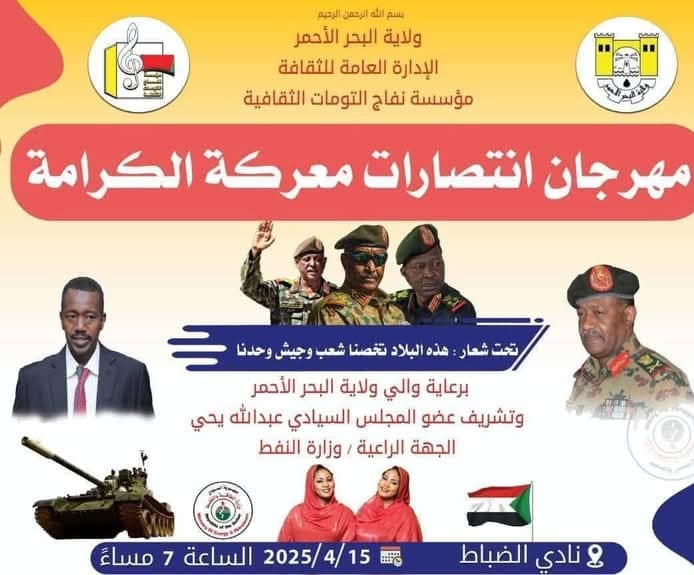 تبرأ عضو مجلس السيادة السوداني عبدالله يحى ووالي ولاية البحر الأحمر من حفل أعلن عنه تحيه المغنيات ” تومات مدني ” والحفل بتشريف عضو مجلس السيادة ورعاية والي البحر الاحمر حسب الاعلان وهو تحت شعار ” هذه البلاد تخصنا ” وهو احتفالا بانتصارات الجيش ، حيث فور الإعلان عن الحفل اشتعلت ” الميديا ” تهكما وسخرية من مسؤولي الدولة بأن البلاد تنزف في كل أطرافها وسقوط الضحايا بالمئات والعشرات يوميا وهؤلاء الحكام يتمايلون مع المغنيات ، وقال بعضهم هل السودان في مكان إقامة الحفلات فقط ( بورتسودان ) وخاصة بأن توزيع اعلان الحفل تزامن مع سقوط حوالي مائة قتيل في معسكر زمزم بولاية شمال دارفور ، وتحت وطأة الهجوم الشعبي أصدر مكتب عضو مجلس السيادة بيانا نفى فيه صلته بهذا الحفل وقال لم تتم دعوته له ، وكذلك قال والي البحر الاحمر لن نحتفل الا بعد تحرير آخر شبر من أرض الوطن ، لكن الواقع بأن كثير من الفنانات السودانيات  ظللن متصدرات المشهد في حرب ١٥ ابريل تأييدا ل ( بل بس ) بزريعة دعم القوات المسلحة وأصبحن مقربات من أعلى مستوى في الدولة .