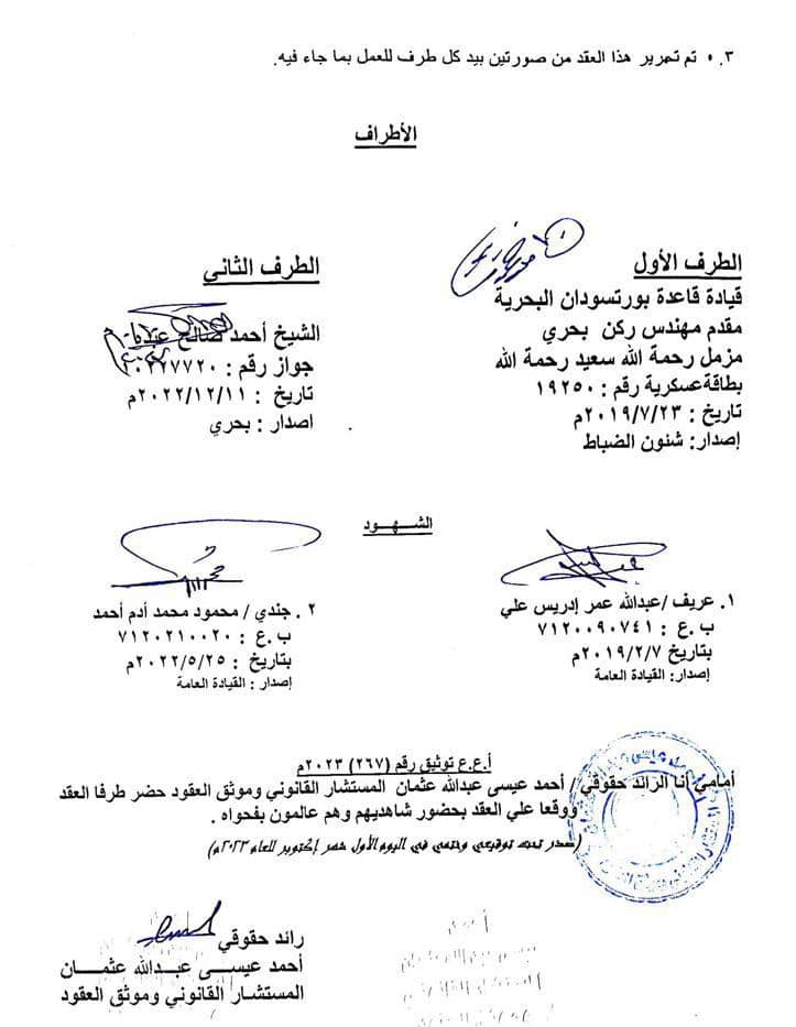 استنجد المواطن الشيخ أحمد صالح عبده برئيس مجلس السيادة القائد العام للقوات المسلحة الفريق أول ركن عبدالفتاح البرهان وتقدم بمظلمة ضد سلاح البحرية بالإضافة لوالي ولاية البحر الأحمر الفريق ركن مصطفي محمد نور وكشف عن تعرضه لظلم كبير من قبل والي الولاية الذي أوقف مشروع استثماري يخصه رغم استيفاءه كافة الاشتراطات القانونية.