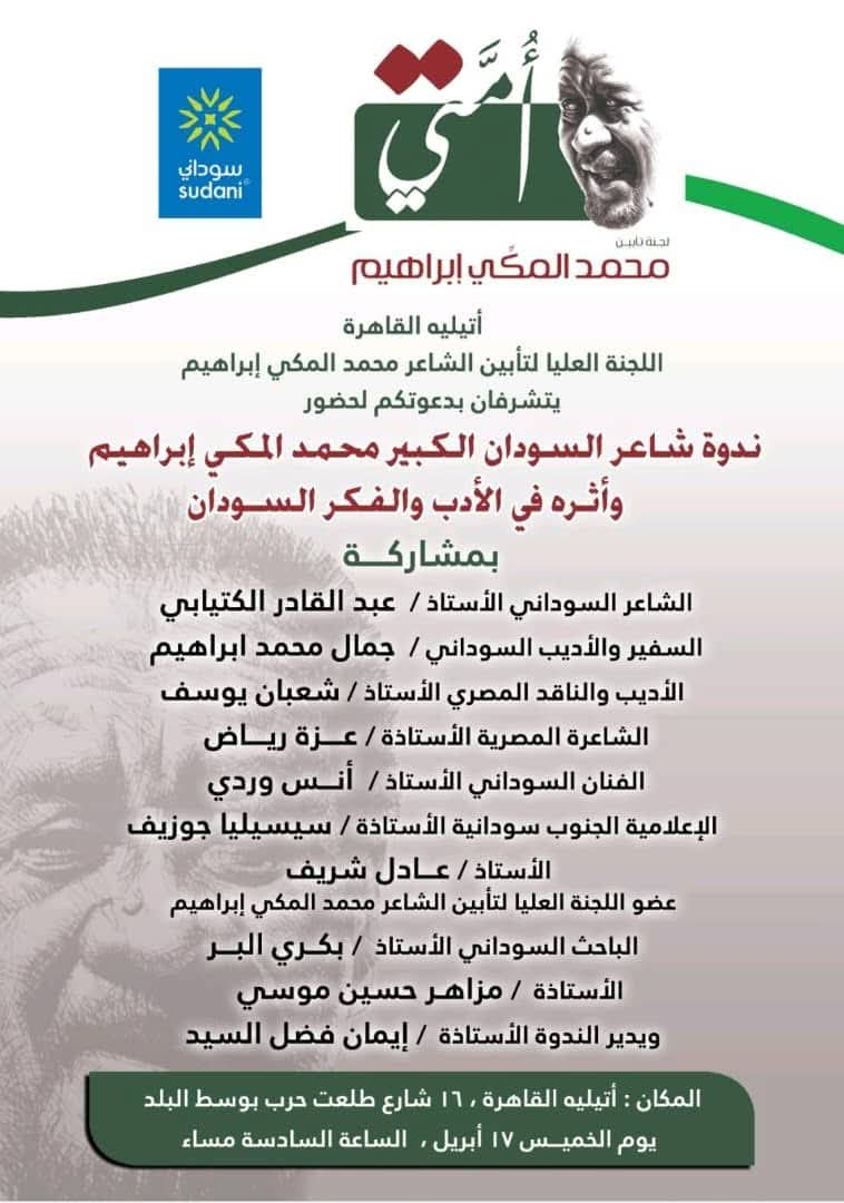 الجدير بالذكر أنَّ الراحل محمد المكي إبراهيم شاعر وكاتب ودبلوماسي سوداني ولد بمدينة الأبيض بكردفان في العام 1939م وتخرج في جامعة الخرطوم كلية القانون في العام 1962م والتحق بوزارة الخارجية في العام 1966م عمل بها حتى العام 1996م حيث دفع باستقالته، وله عدد من الدواوين الشعرية والكتب الفكرية، والروايات، توفي بالقاهرة سبتمبر 2024م