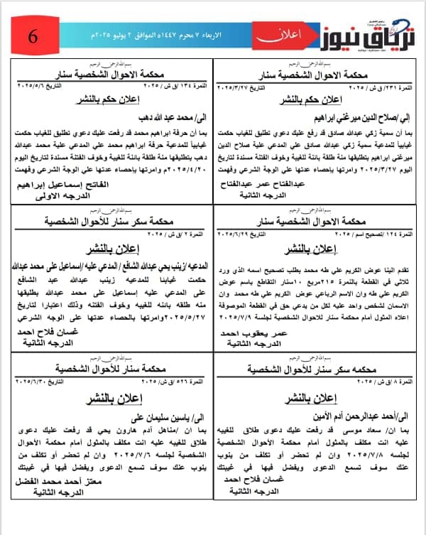 إعلانات اعلانات محاكم ولاية سنار الصادرة الأربعاء ٢ يوليو ٢٠٢٥م ترياق نيوزيوليو 4, 2025 Oplus_131072 مقالات ذات صلة جمعية قلب الحدث للتنمية الشاملة برئاسة *المستشار الإعلامى محمود رمضان توفيق بالتعاون مع اكاديمية رايت بليس* تنظمان ورشة *مجانية* للدعم النفسي للاشقاء السودانين نوفمبر 9, 2025 60 قتيلاً في قصف استهدف مركزًا للنازحين بمدينة الفاشر أكتوبر 11, 2025 اضغط هنا للانضمام الى مجموعاتنا في واتساب ترياق نيوزيوليو 4, 2025 فيسبوك X واتساب تيلقرام