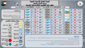 أمطار غزيرة ورعدية متوقعة في شمال وأواسط البحر الأحمر، جنوب شرق وأواسط نهر النيل، شمال شرق وجنوب الولاية الشمالية، وولاية غرب دارفور.