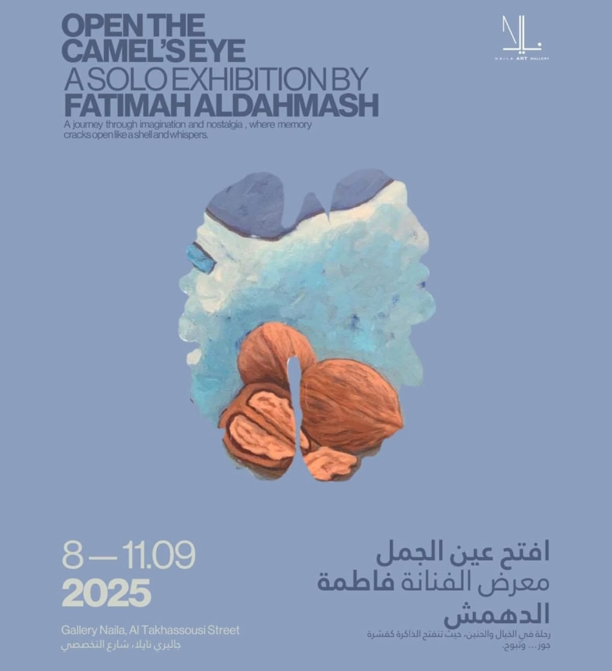 تقيم الفنانة التشكيلية الاحسائية الأستاذة القديرة – فاطمة بنت إبراهيم الدهمش معرضها التشكيلي الشخصي الخامس، والذي يحمل عنوانًا لافتًا ومثيرًا للتأمل «افتح عين الجمل»، وذلك في قاعة نايلا للفنون بمدينة الرياض، خلال الفترة من ٨ إلى ١١ سبتمبر ٢٠٢٥.