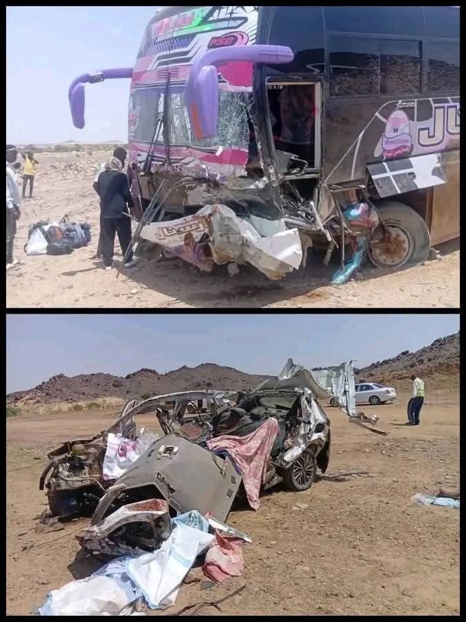 حادث حركة اليم وقع نهار اليوم أدى إلى وفاة ابن منطقة القمبرات/ بربر: عبدالمنعم العوض التبور و افراد اسرته حيث وقع الحادث بين عربته وبص سفري بالقرب من خور عرب ..