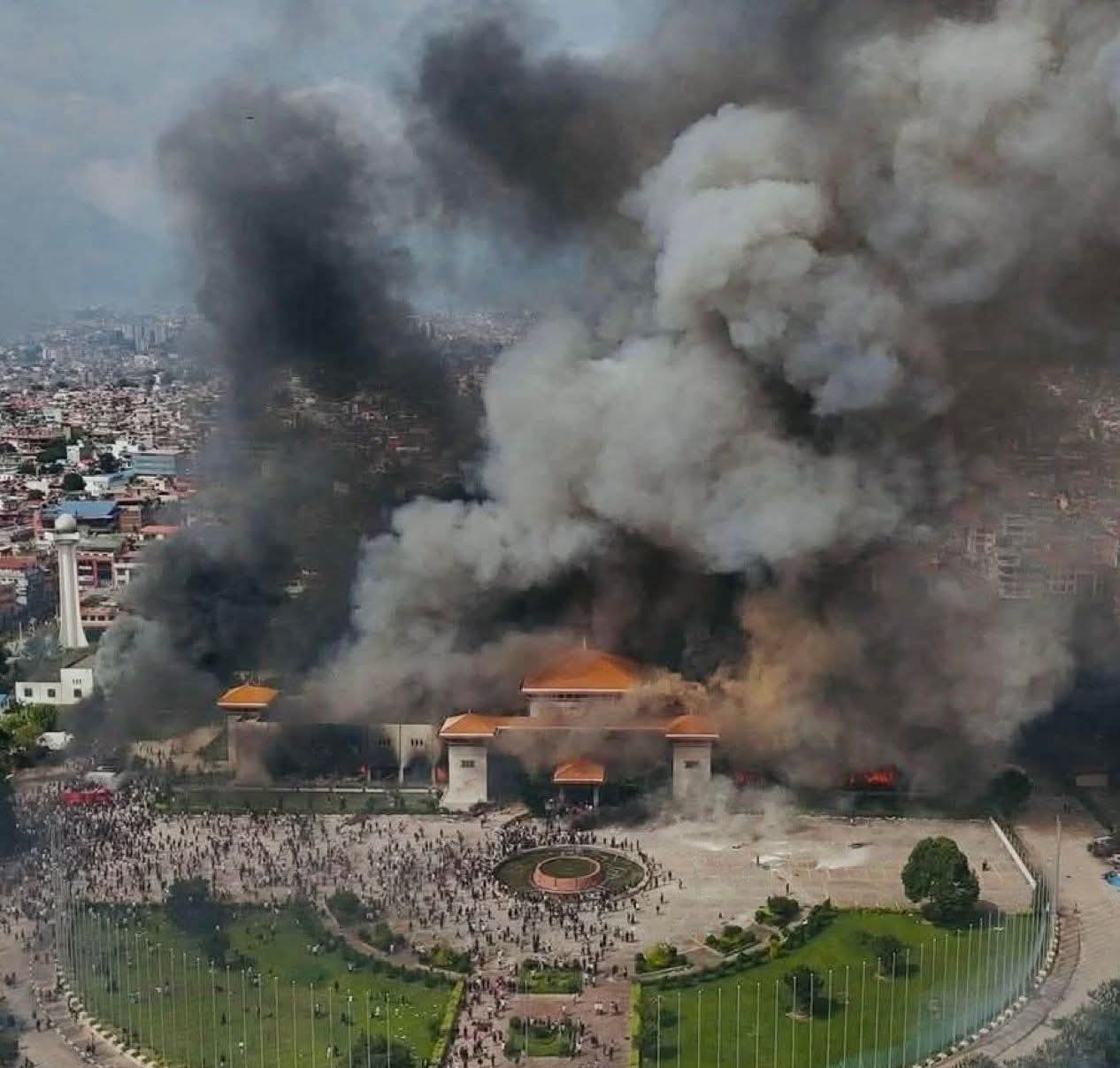 في تصعيد غير مسبوق، اقتحم المتظاهرون مباني حكومية بارزة، حيث أضرموا النار في مقرّ البرلمان ومجمع سينغا دوربار (مقر رئاسة الوزراء والوزارات)، وهاجموا منازل كبار المسؤولين، بما في ذلك منزل رئيس الوزراء، بينما أبعدتهم المروحيات العسكرية إلى مناطق آمنة .
