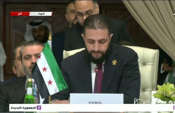 أكد نائب الرئيس السوري أحمد الشرع، في كلمته أمام القمة العربية الإسلامية الطارئة المنعقدة في الدوحة اليوم