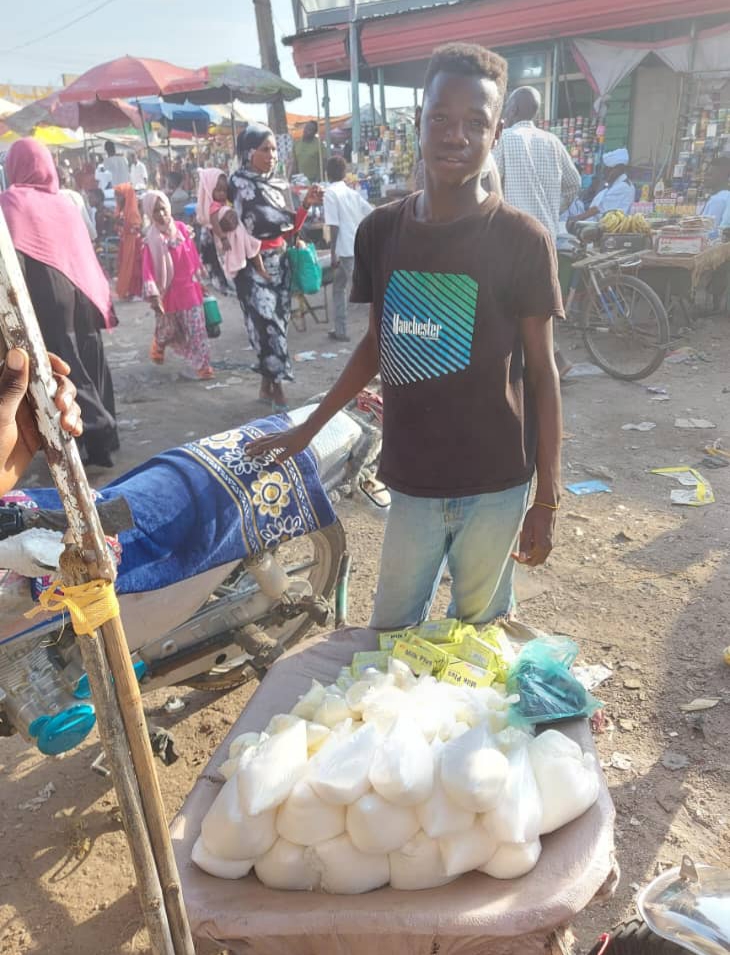 مصطفى محمد (13 عاماً) جاء نازحاً مع أسرته من خمس أفراد إلى نيالا نهاية 2024م. لم يدخل مدرسة قط، لكنه يدرس في خلوة لحفظ القرآن صباحاً قبل أن يتجول في السوق بعمل “الأورنيش”.