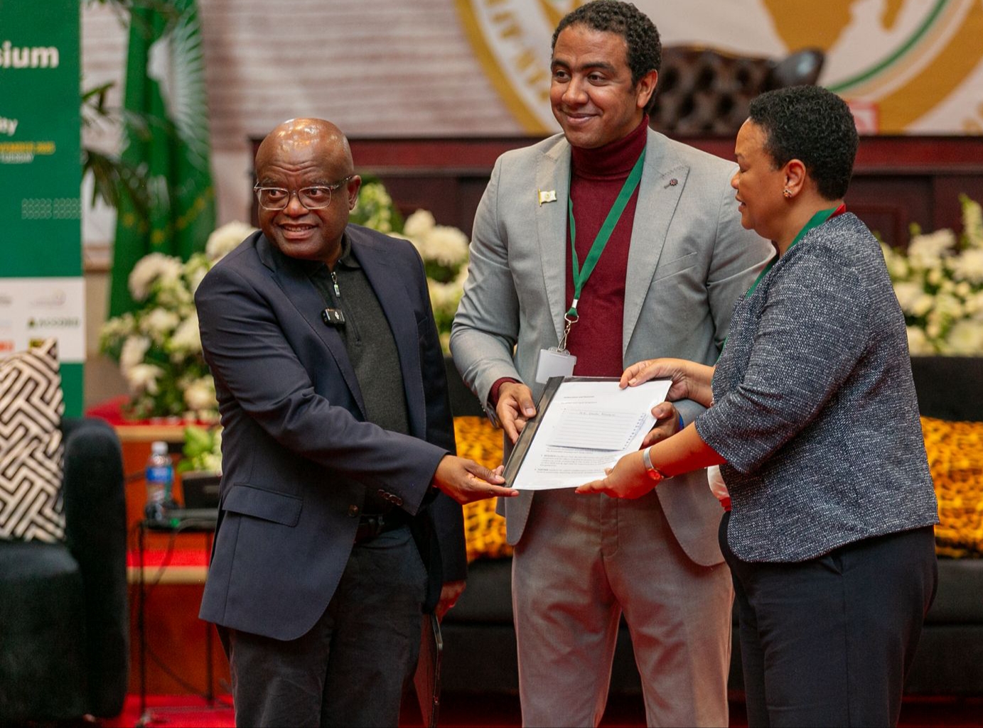 سَلَّمَ المصري حسن غزالي، عضو لجنة الاتصال بآلية مراجعة النظراء الإفريقية ومؤسس شبكة التضامن العالمي ، مخرجات مؤتمر الشباب الإفريقي الخامس بجنوب أفريقيا إلى السيد دادا موريرو، عمدة مدينة جوهانسبرج، ورئيسة آلية مراجعة النظراء الإفريقية السفيرة ماري أنطوانيت، وذلك في ختام فعاليات مؤتمر الشباب الإفريقي، الذي عُقد بالبرلمان الإفريقي في جنوب أفريقيا تحت شعار: “الشباب في الحكم: من الوعد إلى الازدهار”.