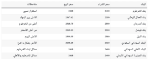 - البنك السوداني السعودي حافظ على أدنى مستويات الأسعار مقارنة ببقية البنوك.