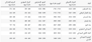 - الريال السعودي والدرهم الإماراتي تراوحا بين 570 – 707 جنيه حسب البنك.