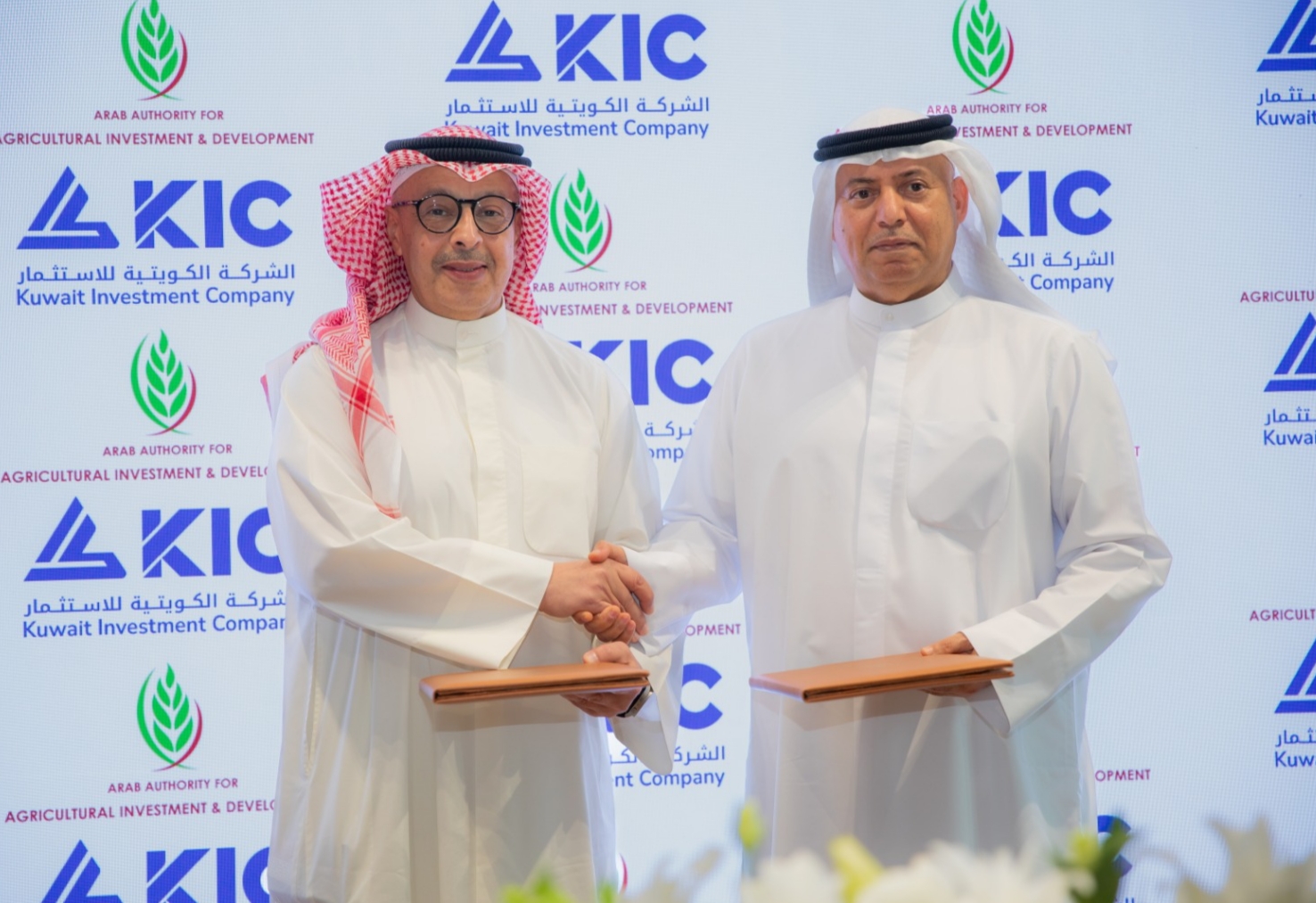 وجرت مراسم التوقيع في مقر المكتب الرئيسي للهيئة بدبي، حيث وقع مذكرة التفاهم سعادة الدكتور عبيد سيف حمد الزعابي، رئيس مجلس إدارة الهيئة العربية للاستثمار والإنماء الزراعي، والسيد فواز سليمان الأحمد، الرئيس التنفيذي للشركة الكويتية للاستثمار.