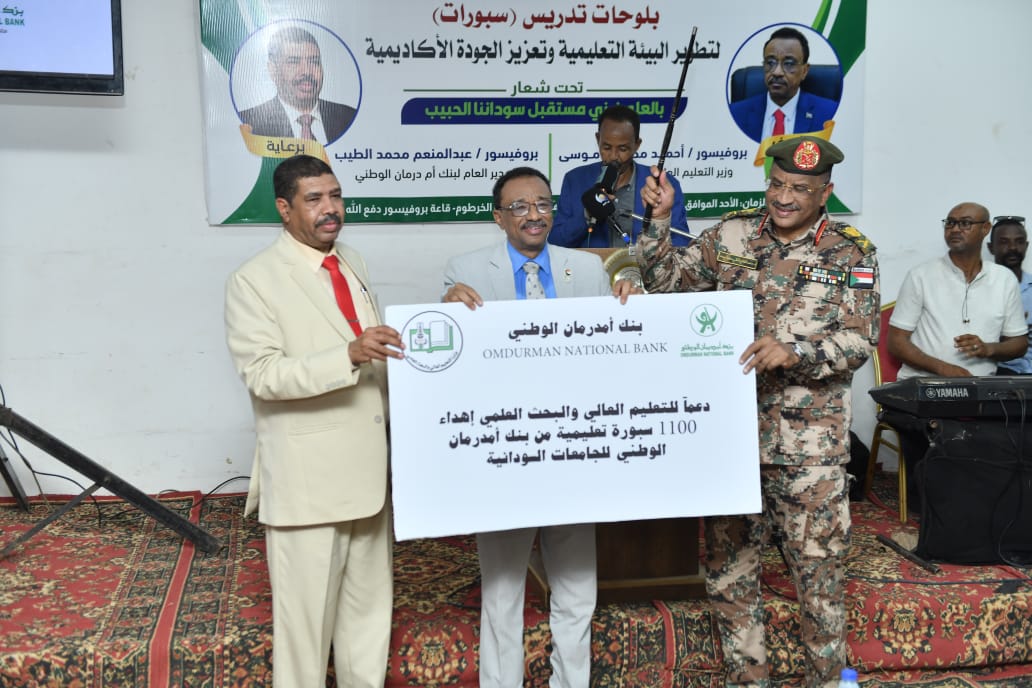 وكانت وزارة التعليم العالي والبحث العلمي قد كرمت في الحفل د.محمد الفاتح الفكي رئيس مجلس ادارة بنك امدرمان الوطني والبروفيسور عبدالمنعم محمد الطيب المدير العام للبنك تقديرا لدورهم في دعم الجامعات