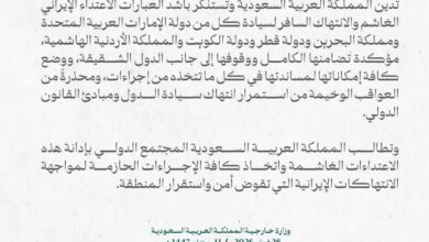 أتى ذلك، فيما هددت إيران برد عنيف بعد أن شنت الولايات المتحدة وإسرائيل عملية عسكرية مشتركة ضد البلاد. وقال المتحدث باسم هيئة الأركان العامة للقوات المسلحة: “سنلقن إسرائيل والولايات المتحدة درسا لم يسبق لهما أن مرا به”.