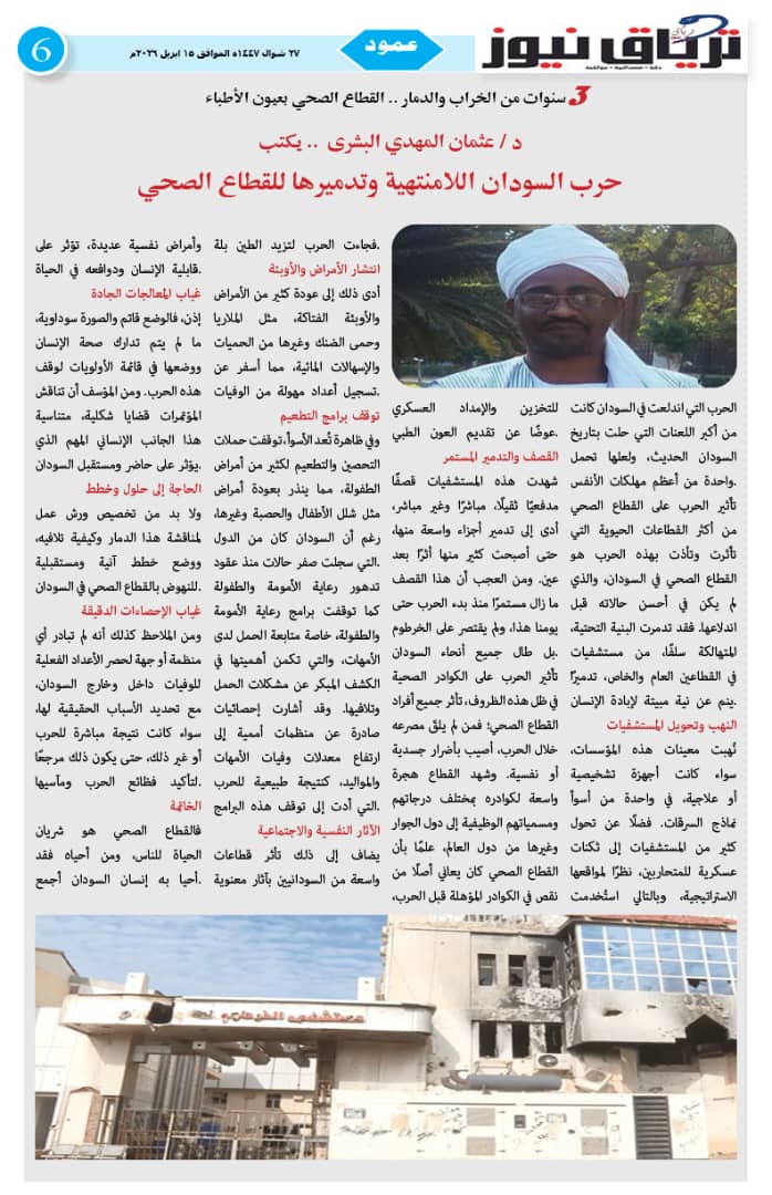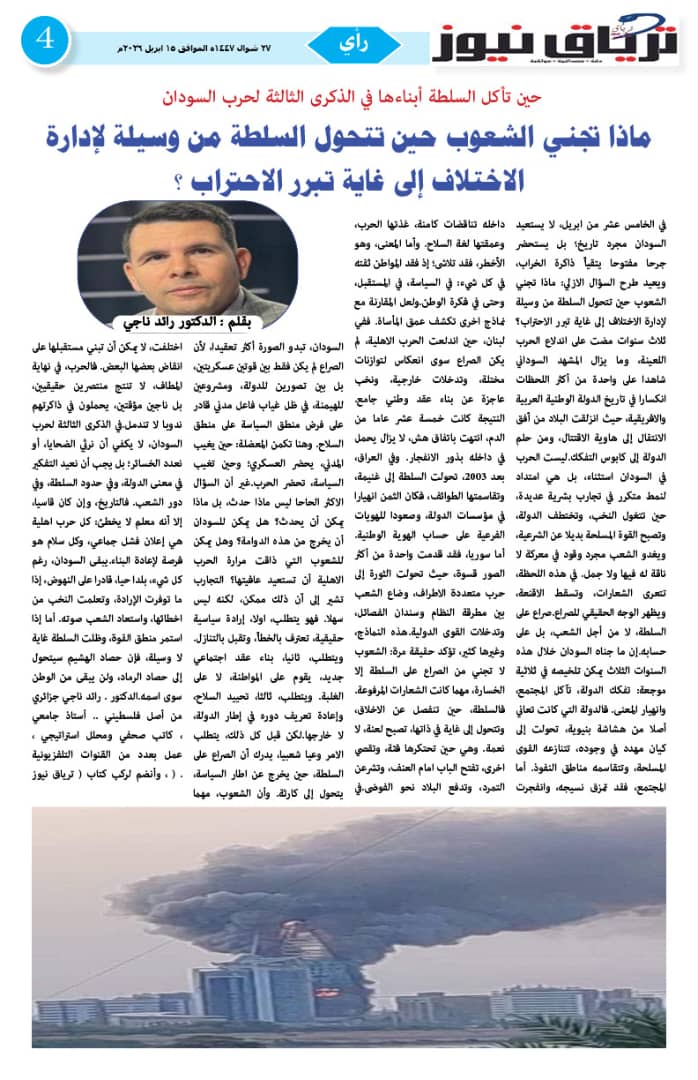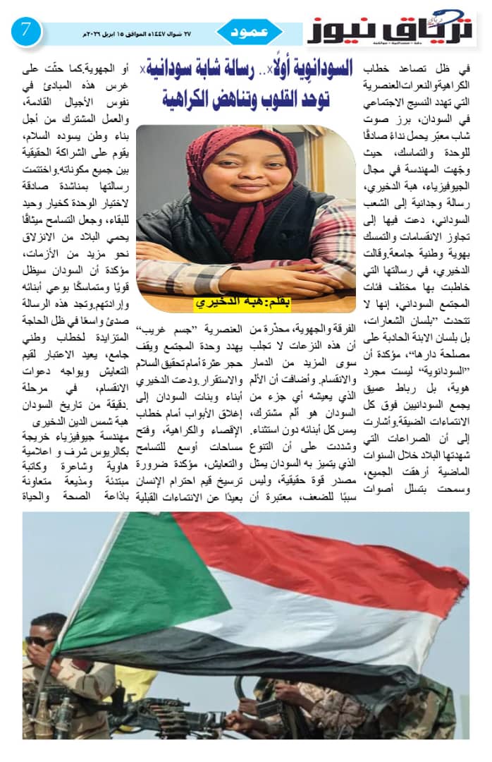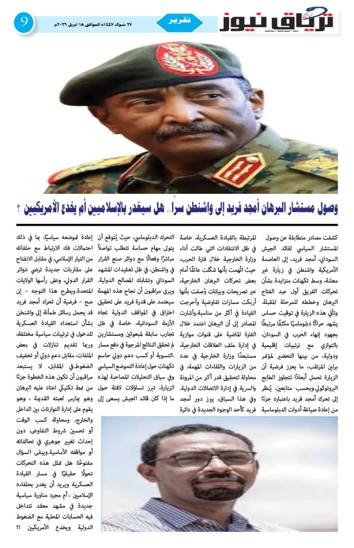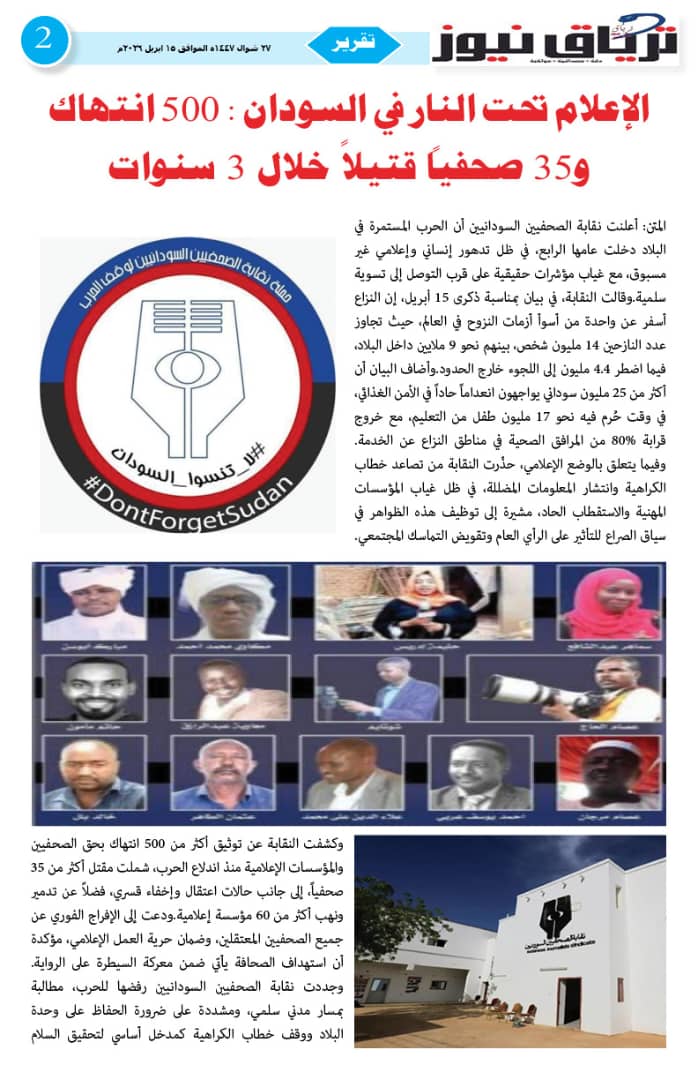 أبرز المواضيع صحيفة ترياق نيوز بي دي إف العدد 46 الذكرى الثالثة للحرب الصادر 15 ابريل 2026م ترياق نيوزأبريل 18, 2026 مقالات ذات صلة عاجل .. إحتدام المعارك في كردفان وتضارب الأنباء عن التقدم الميداني أبريل 18, 2026 مبعوث الإيقاد: لقاء جديد للقوى السودانية الشهر المقبل و«نداء برلين» تجاوز الخطوط الحمراء واختراق مهم نحو السلام أبريل 17, 2026 اضغط هنا للانضمام الى مجموعاتنا في واتساب ترياق نيوزأبريل 18, 2026 فيسبوك X واتساب تيلقرام
